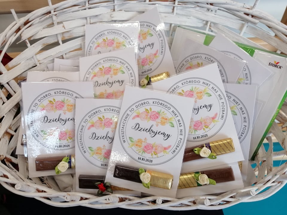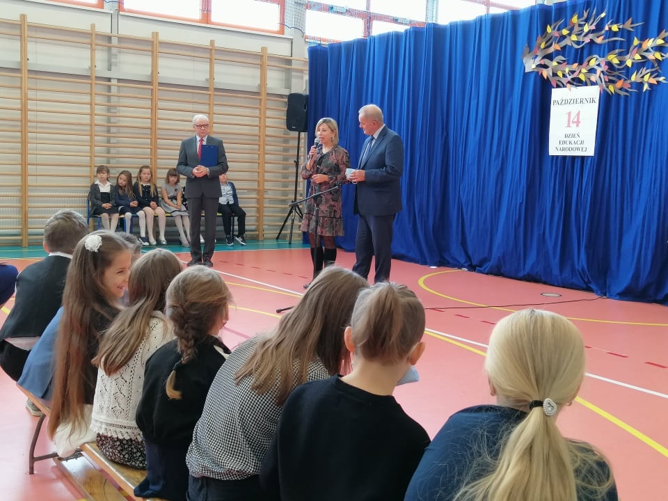 Dzisiaj świętowaliśmy Dzień Edukacji Narodowej. Naszą uroczystość rozpoczął p. Dyrektor Sławomir Nadolski, który w pięknych słowach opowiedział o znaczeniu pracy nauczyciela. Wszystkim pracownikom szkoły podziękował za codzienny trud i zaangażowanie, oraz życzył wytrwałości, sukcesów i zadowolenia. Swoje życzenia przekazali również przedstawiciele Organu Prowadzącego, Rady Gminy Pomiechówek, Rady Rodziców i Samorządu Uczniowskiego. Naszą uroczystość uświetnił występ uczniów klasy II, którzy zaprezentowali piękny program słowno- muzyczny. Były też nagrody, kwiaty i upominki. Po części oficjalnej znalazł się czas na coś słodkiego... Dziękujemy paniom A. Mychlińskiej i H. Golnik, które były odpowiedzialne za przygotowanie tegorocznych obchodów Dnia Edukacji Narodowej.