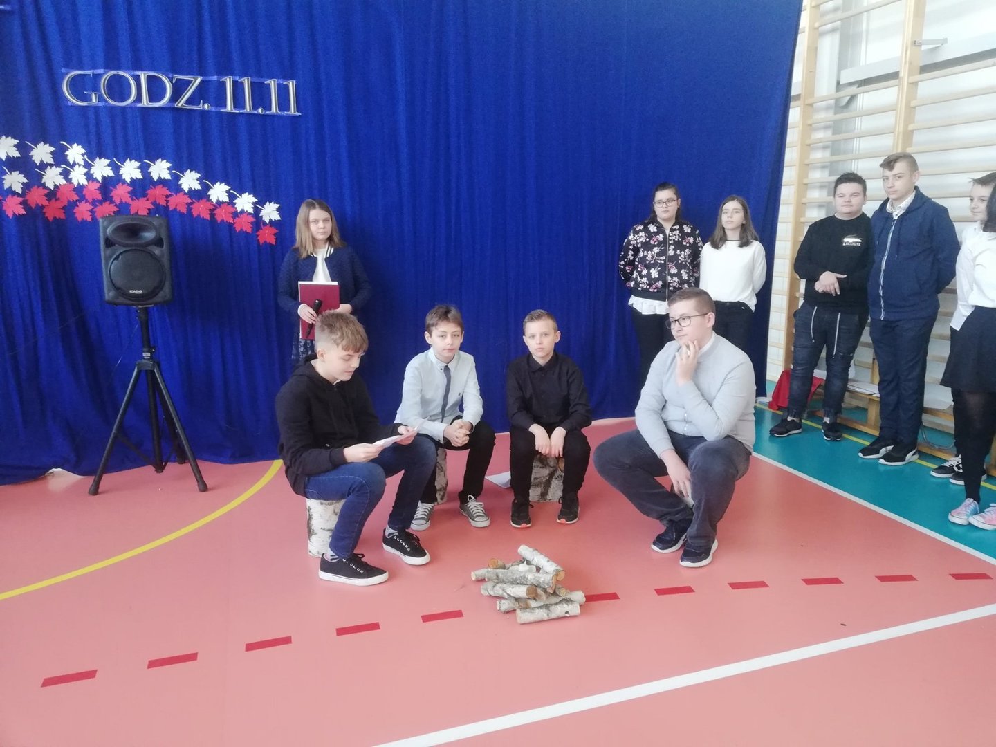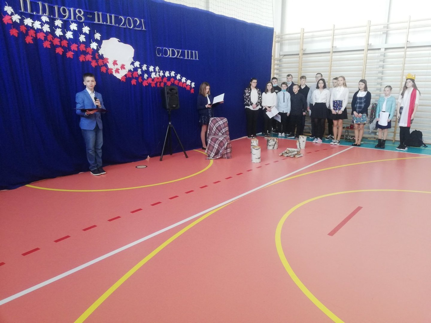 W czasie krótkiego montażu słowno - muzycznego przedstawili drogę Polaków do niepodległości. Recytując utwory znanych poetów, przybliżyli nam tę trudną historię. Wiersze przeplatane były pieśniami patriotycznymi w nowych i starszych aranżacjach. Usłyszeliśmy: Biały krzyż, Wojenko, wojenko, wspomniane już Legiony, Honor i gniew oraz Pierwszą kadrową. W tle pojawiły się również Preludium e moll op. 28 i Etiuda rewolucyjna Fryderyka Chopina. Urozmaiceniem były scenki pantomimiczne na tle Etiudy rewolucyjnej.