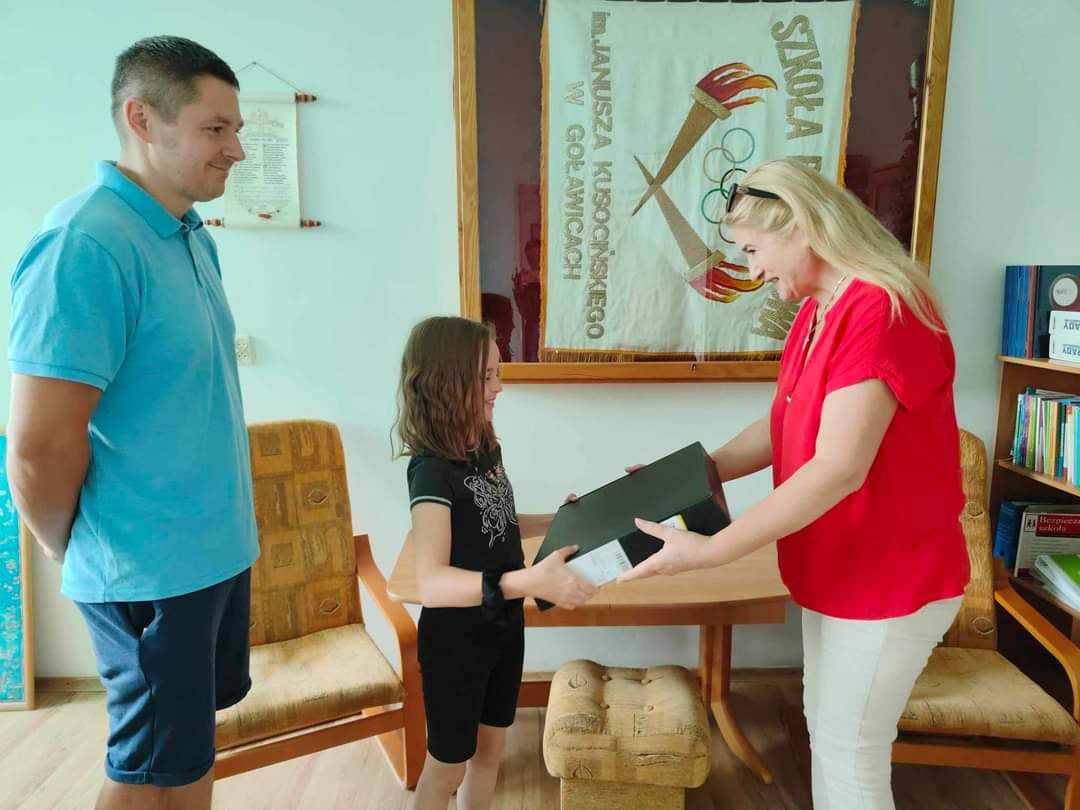 Pani Dyrektor wręczyła uczniom klasy IV laptopy w ramach projektu "Laptop dla ucznia"