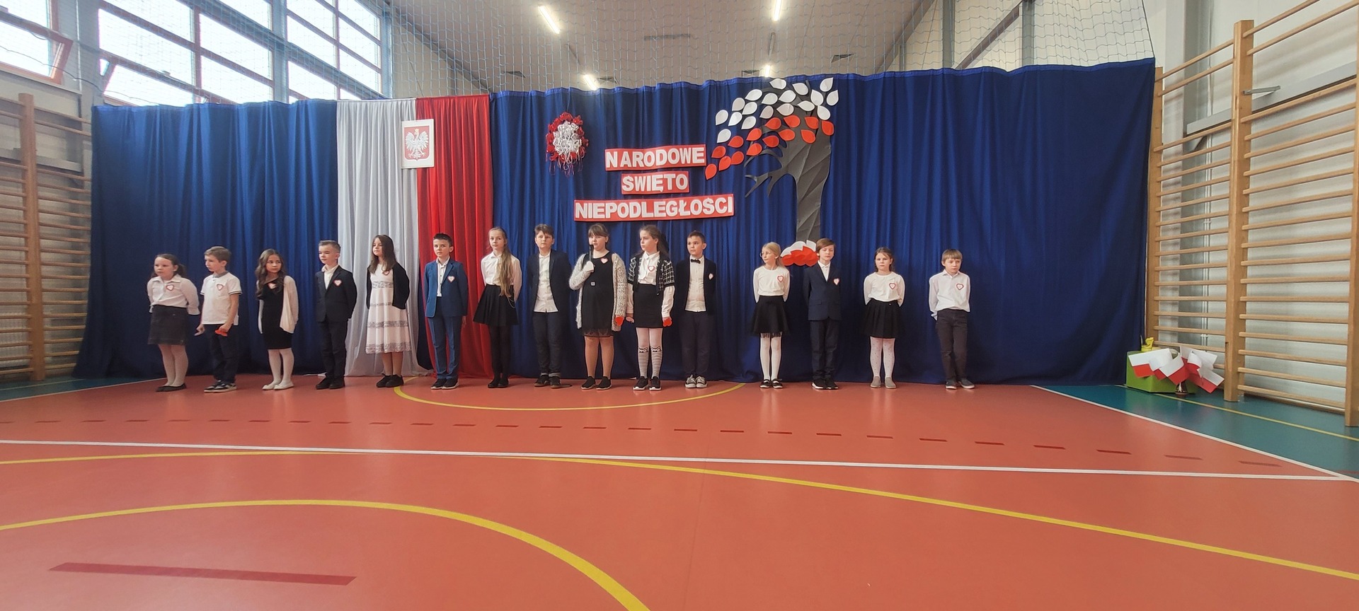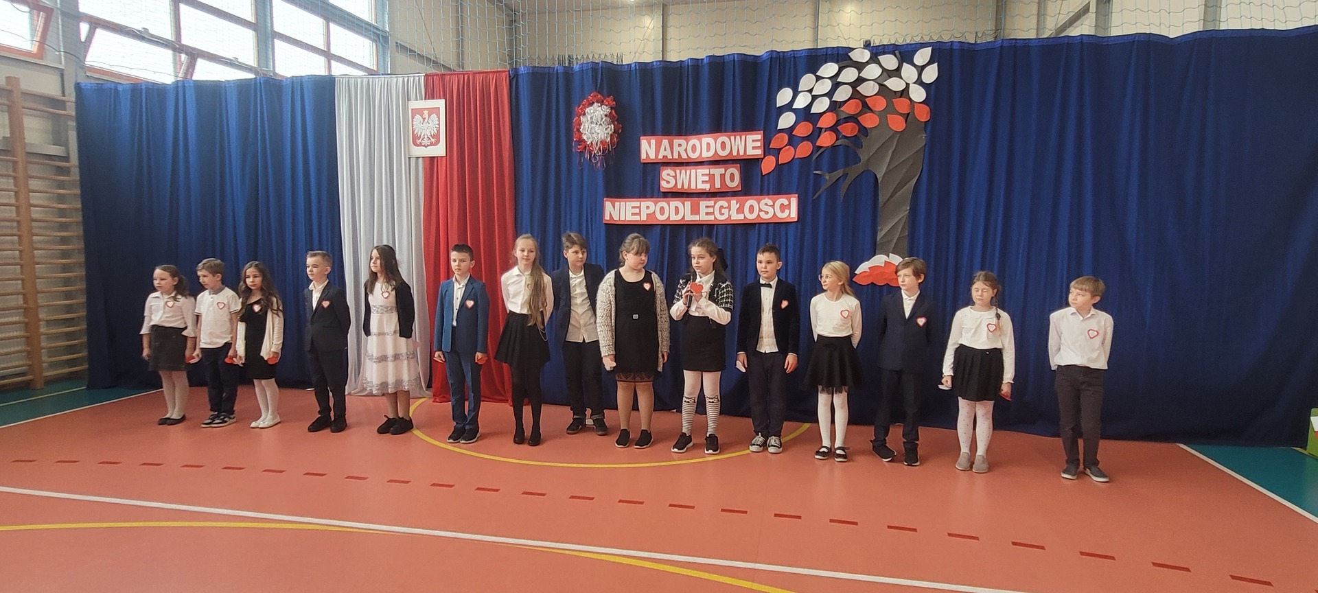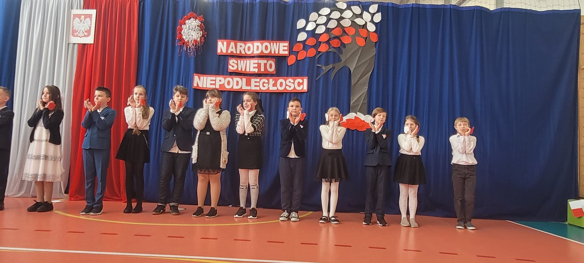 W dniu dzisiejszym społeczność Naszej Szkoły o symbolicznej godzinie 11:11 odśpiewała cztery zwrotki hymnu państwowego "Mazurka Dąbrowskiego". Następnie uczniowie klasy III pod przewodnictwem p. Anety Domańskiej przygotowali program artystyczny, w którym ukazana została historia rozpadu kraju oraz odzyskania przez Polskę niepodległości.