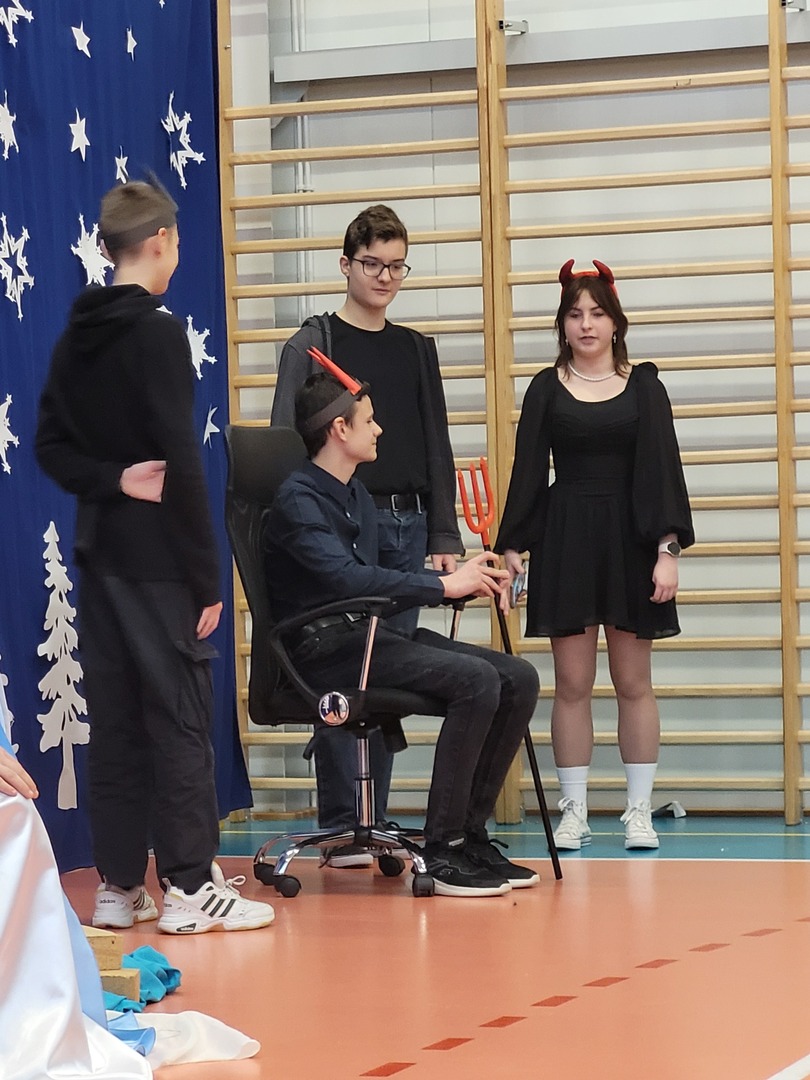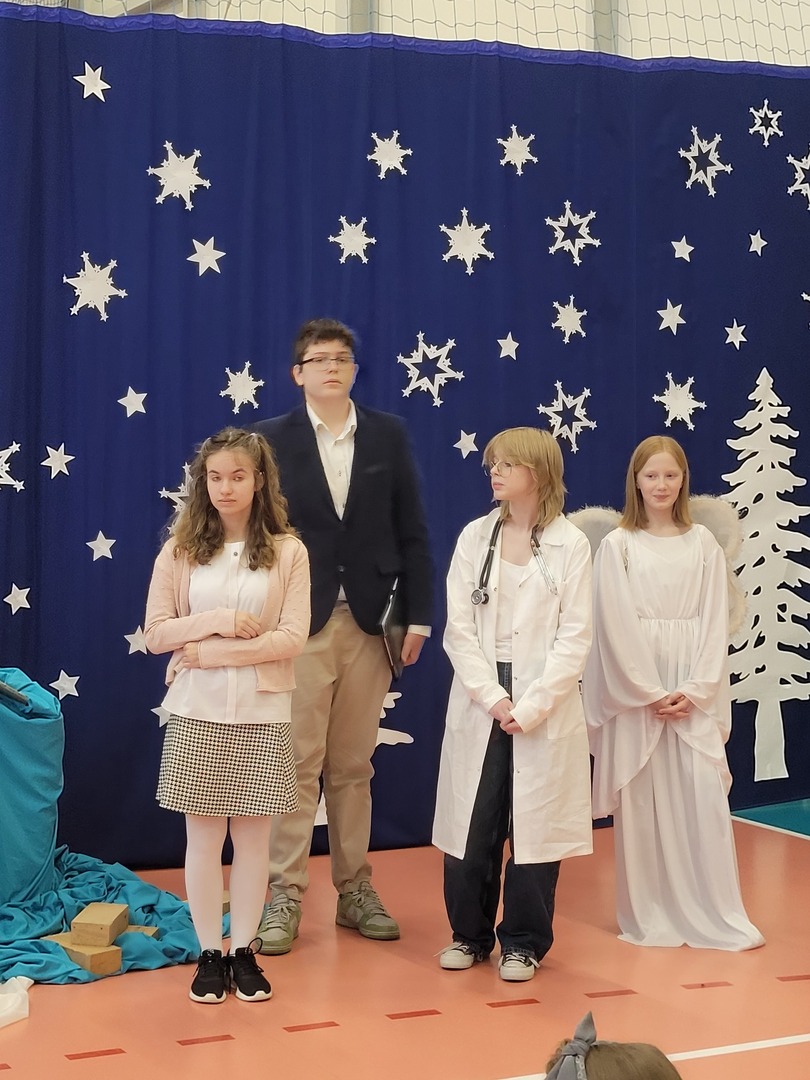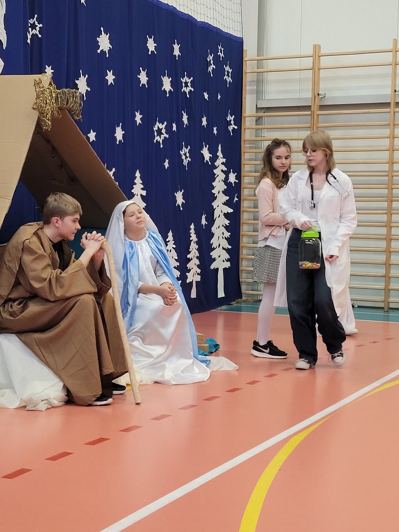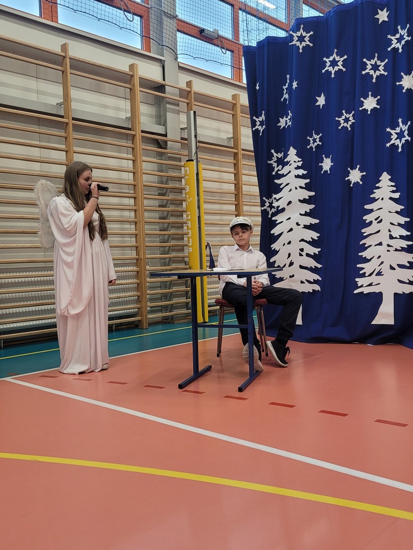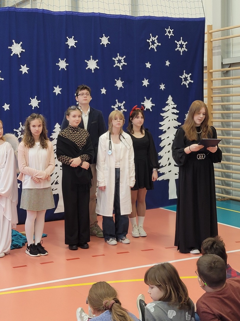 Rozpoczęliśmy go Jasełkami, które zostały przygotowane przez uczniów klas VI-VIII, pod kierownictwem p. Marzeny Klimaszewskiej. Aktorom oraz p. Marzenie składamy serdeczne gratulacje za przekazanie w ciekawy i zabawny sposób istoty i wartości Świąt Bożego Narodzenia