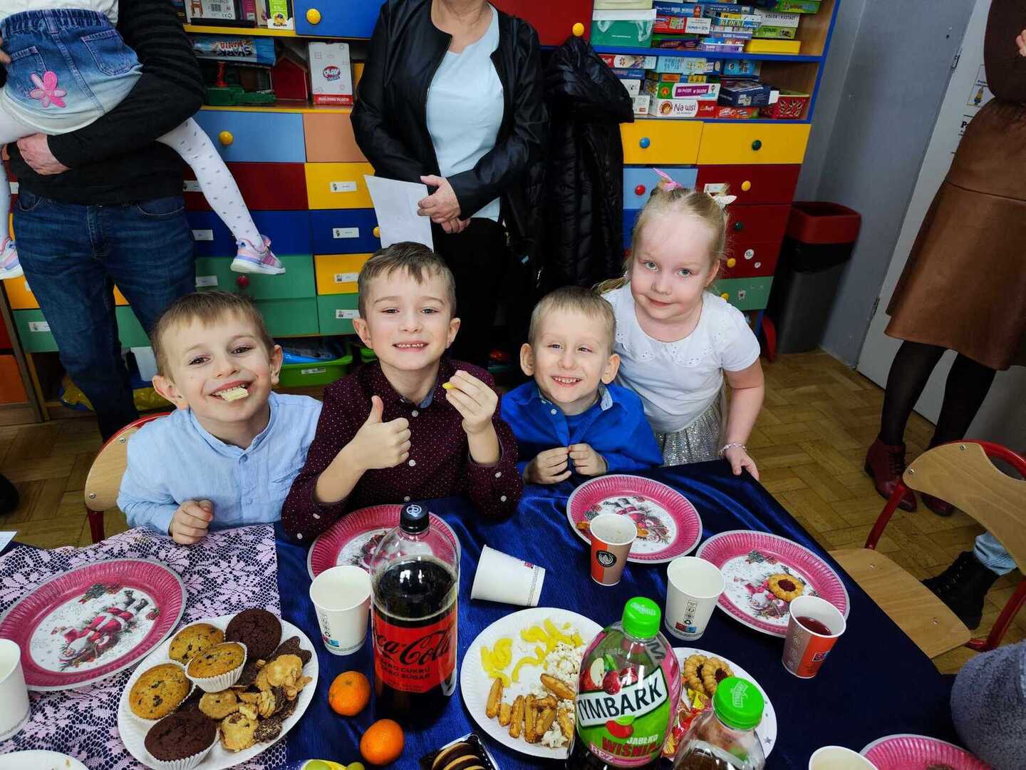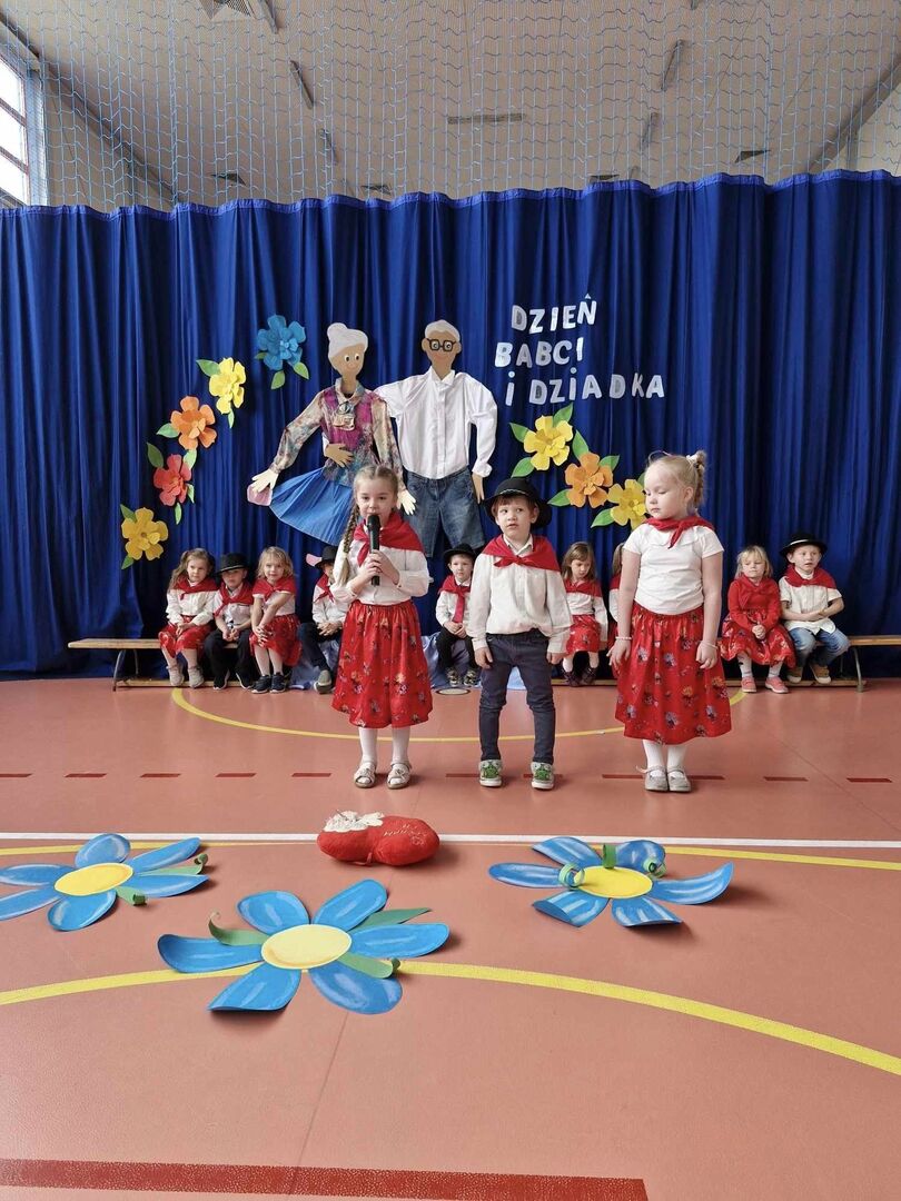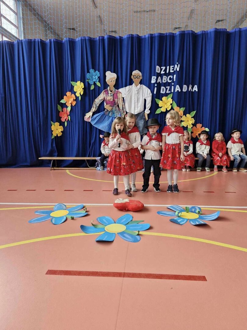 Przygotowane były przedstawienia w formie muzyczno-słownych wystąpień dzieci, na które zaproszeni byli kochani dziadkowie. Były wiersze, scenki odgrywane przez dzieci, przeplatane wzruszającym śpiewem, taniec, a na koniec wręczanie własnoręcznie zrobionych przez dzieci prezentów i laurek z życzeniami, ozdobionych kolorowymi obrazkami lub zdjęciami wnuków. Takimi samodzielnie wykonanymi upominkami wnuki sprawiły ogromną radość i chwilę niezapomnianych wzruszeń swoim bliskim. Bacie i Dziadkowie skorzystali również ze słodkiego poczęstunku przygotowanego przez rodziców