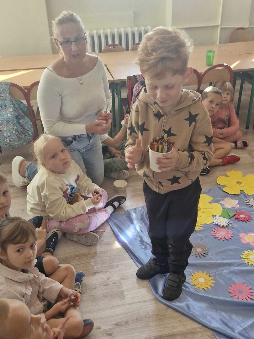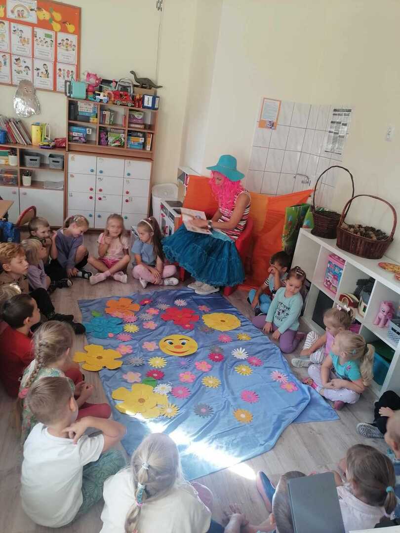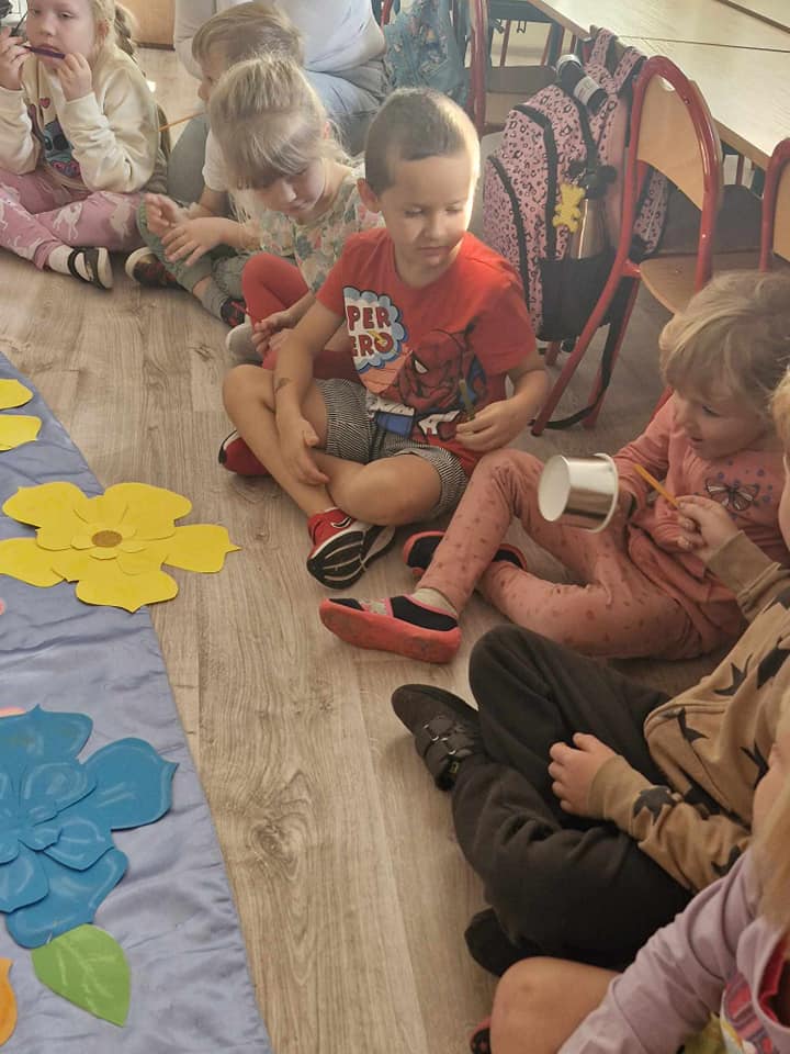 Dzieci z zainteresowaniem słuchały czytanego opowiadania, uczestniczyły w zabawach z "Tajemniczym Gościem" oraz wykonywały pracę plastyczną