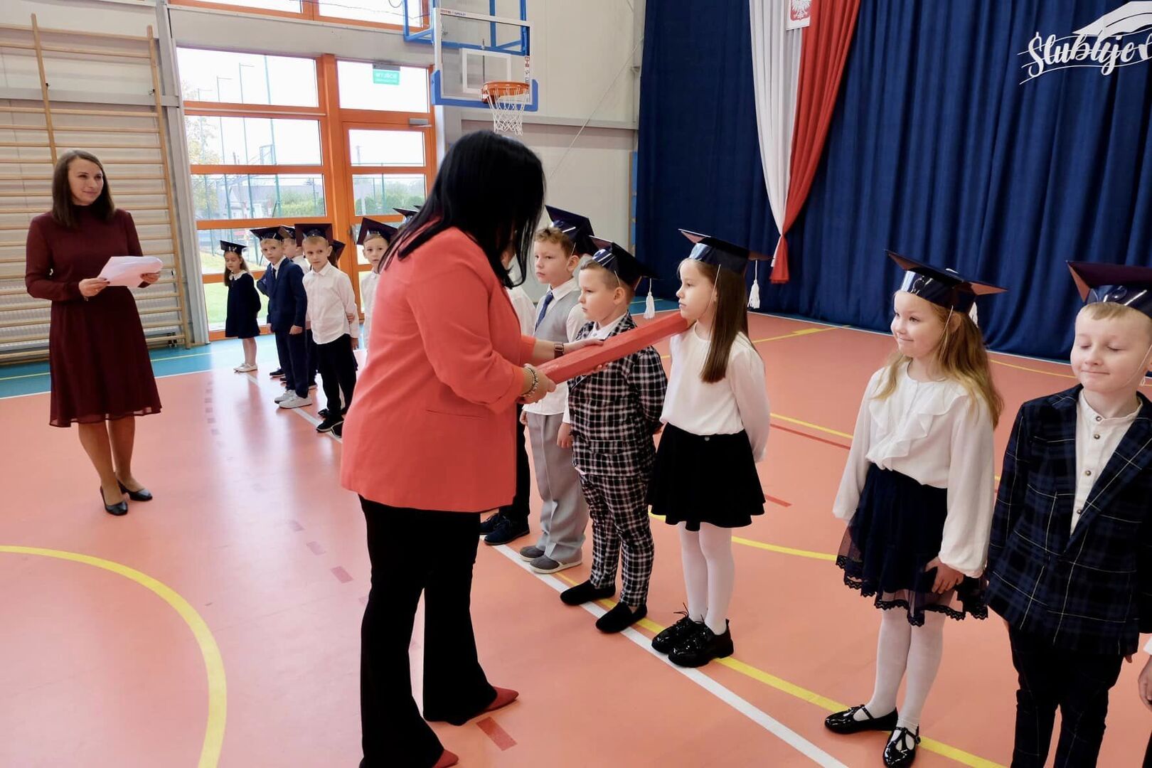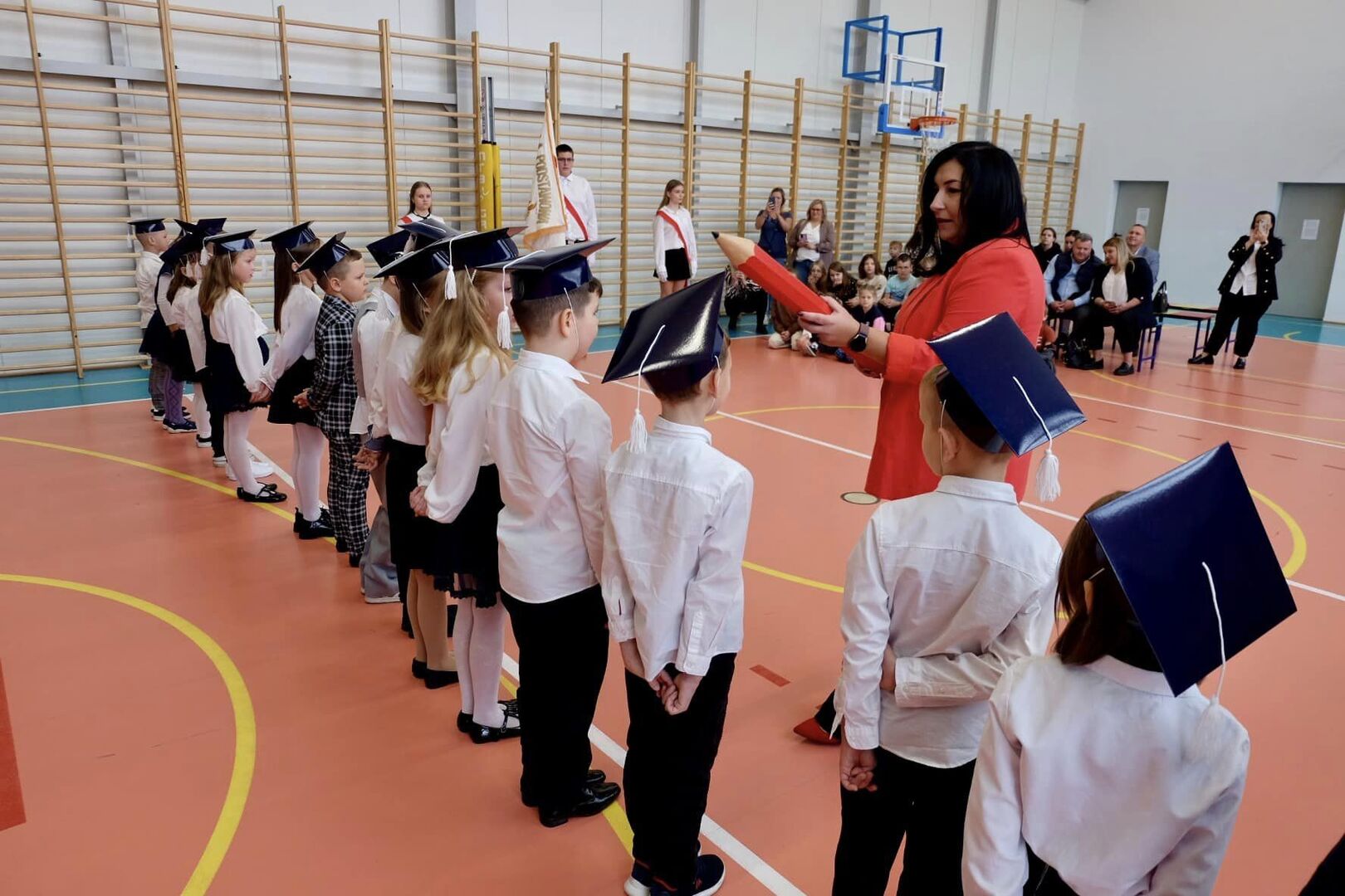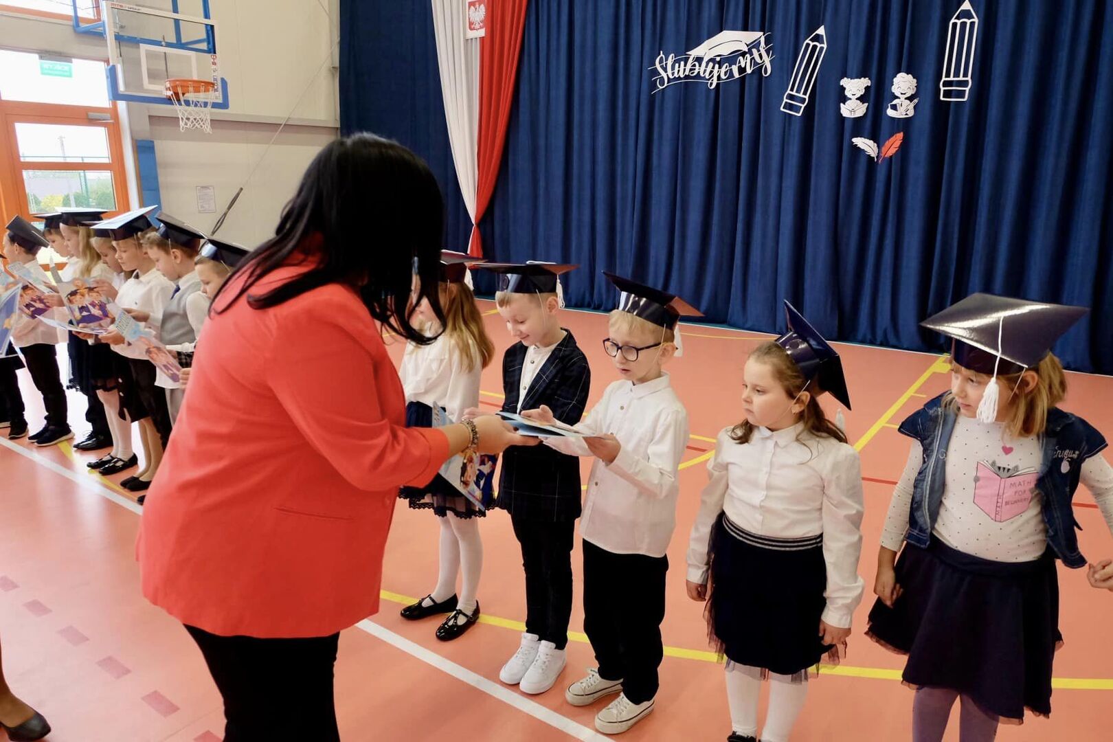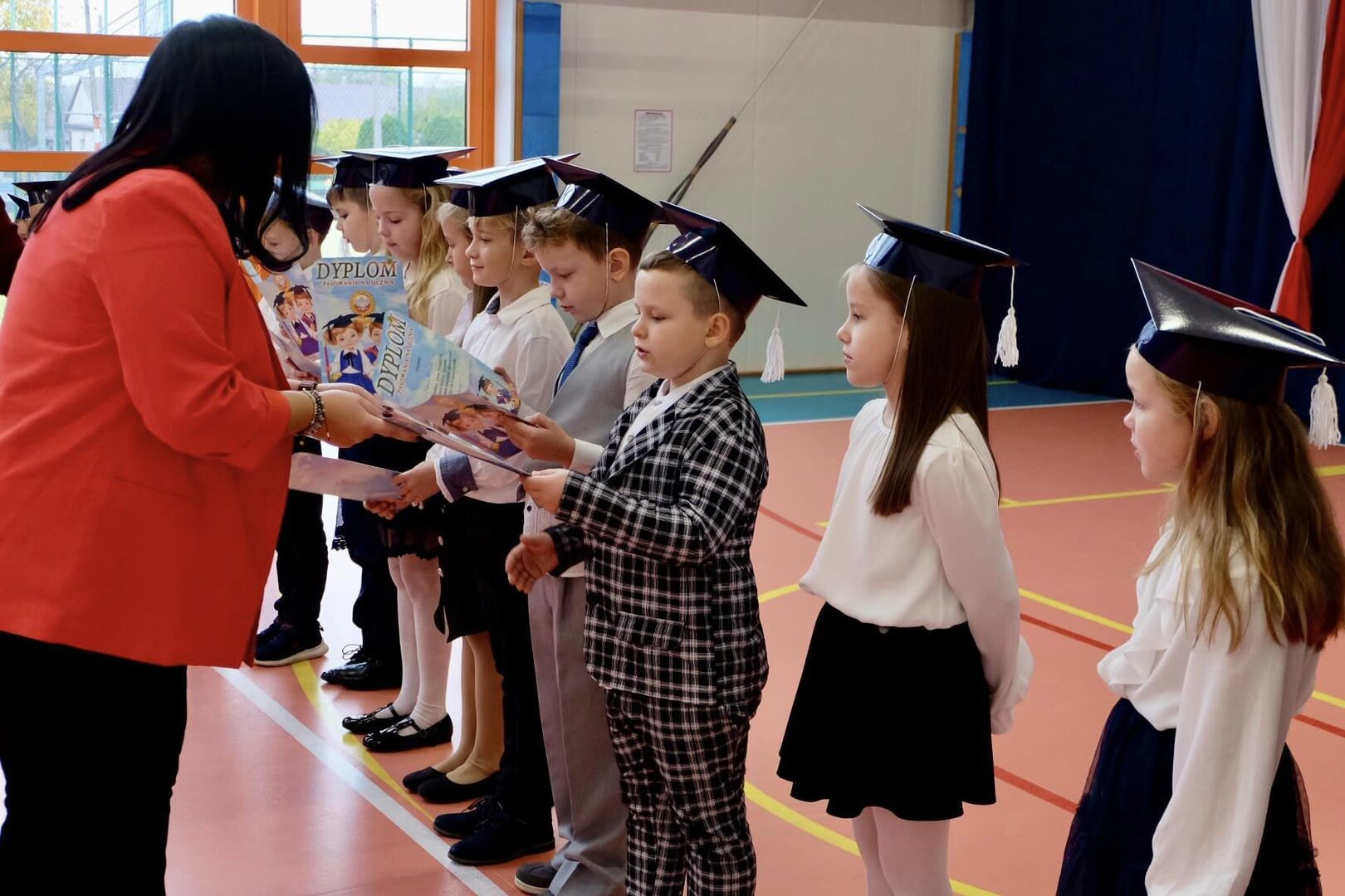 Pasowania dokonała Pani Dyrektor, która wręczyła każdemu uczniowi dyplom na pamiątkę tego ważnego dnia.