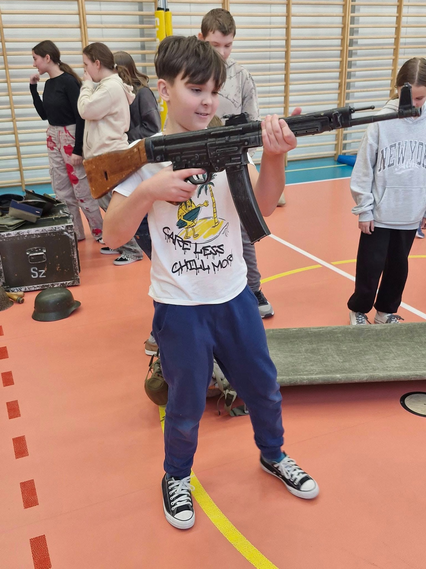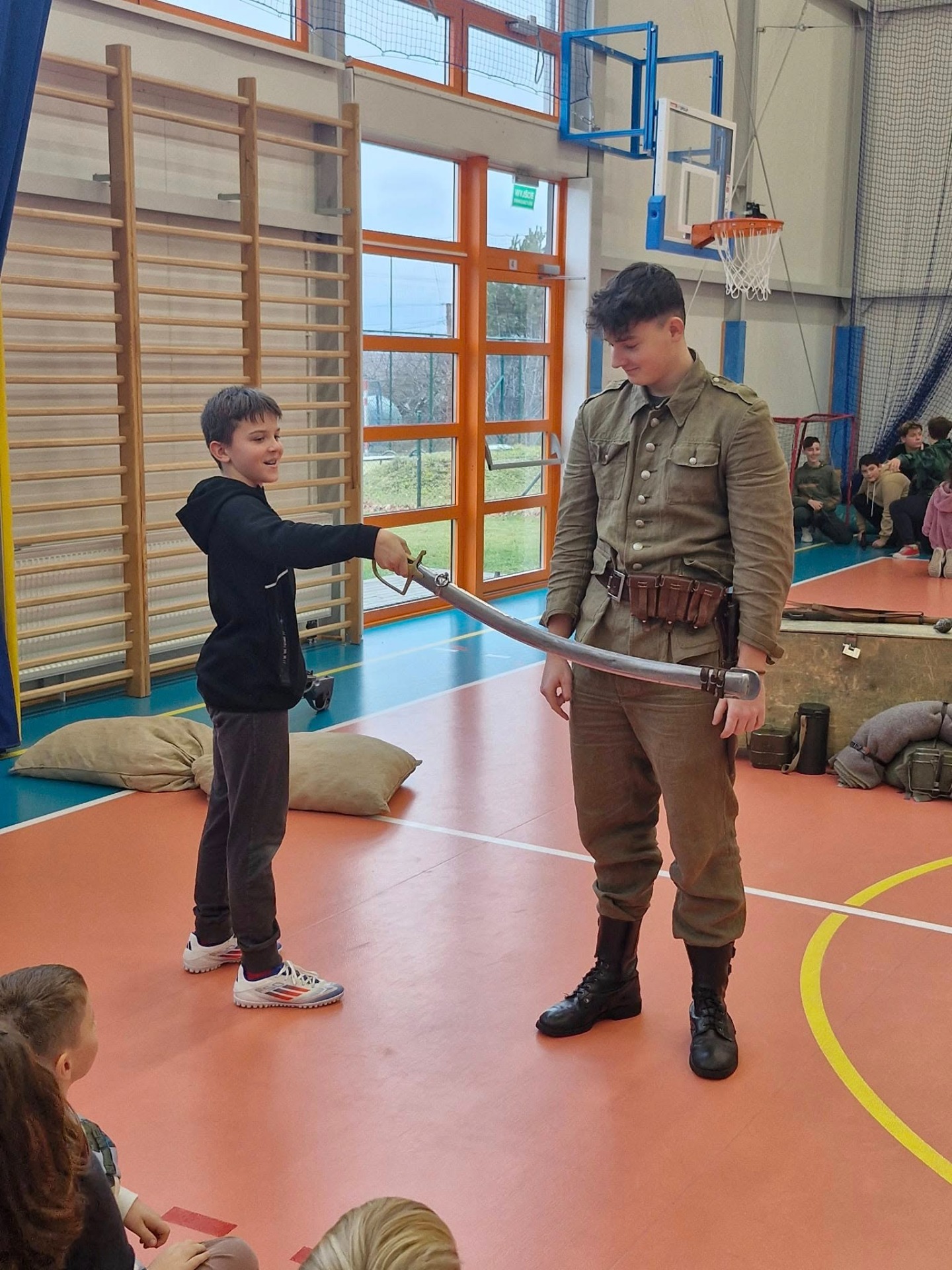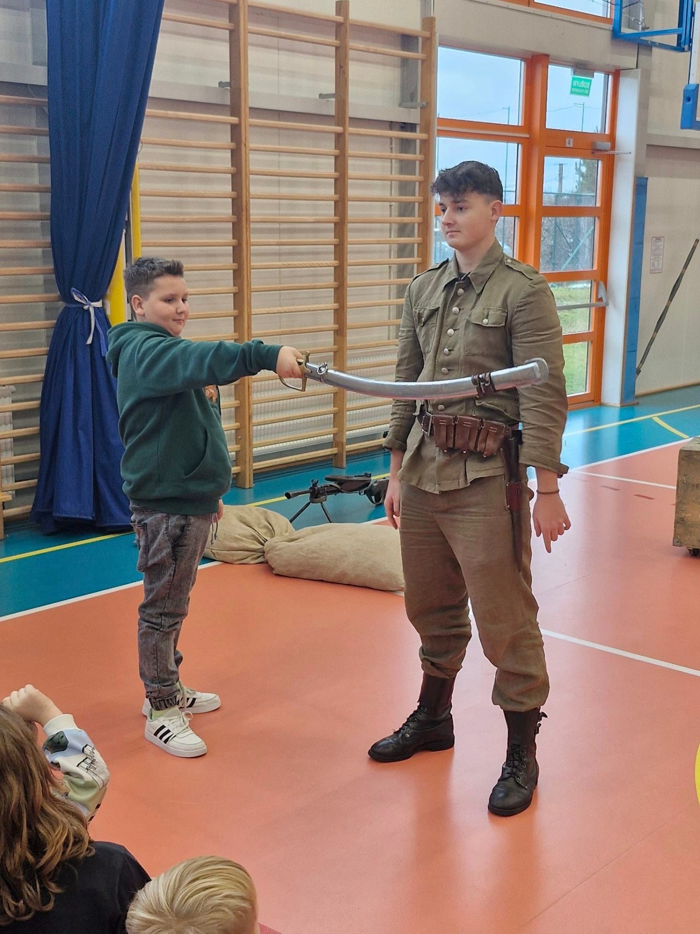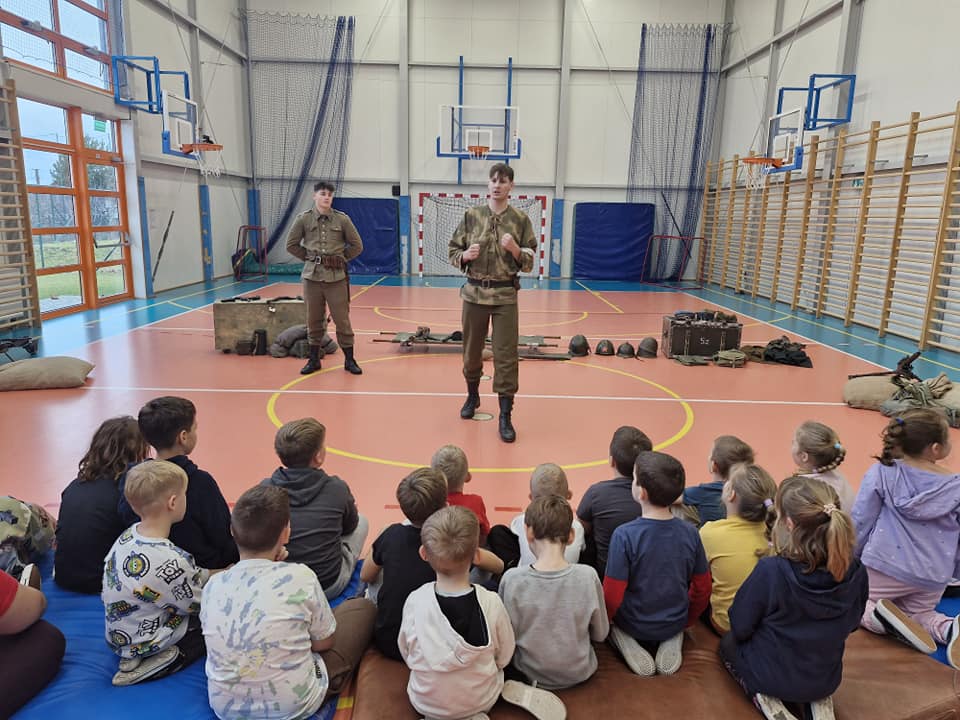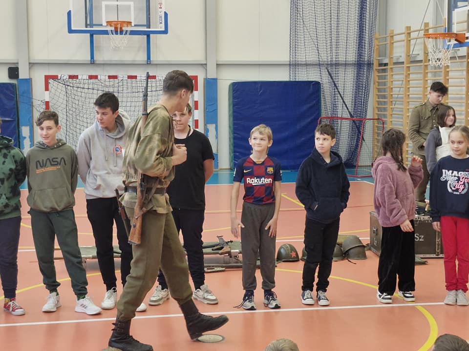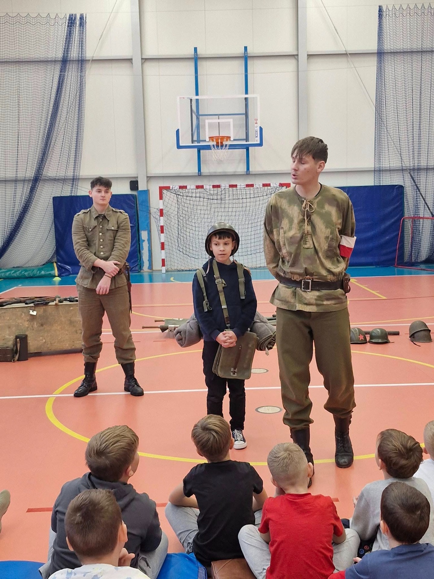 Prowadzący przedstawił po krótce historię Polski od rozbiorów aż po powstanie warszawskie. Prelekcji towarzyszył pokaz eksponatów; mundurów, hełmów, broni palnej i białej