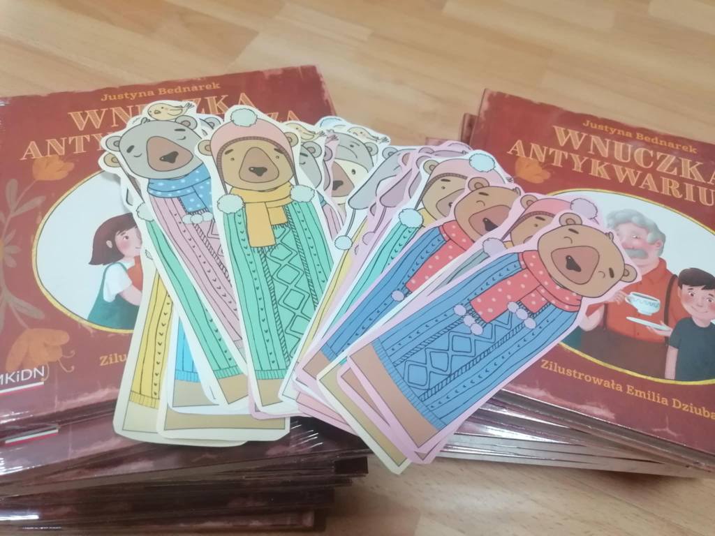 Pierwszoklasiści na pamiątkę wizyty w Bibliotece Szkolnej otrzymali książkę J. Bednarek pt. "Wnuczka antykwariusza" oraz zakładki do książki.Każdy uczeń wypożyczył też swoją pierwszą książkę