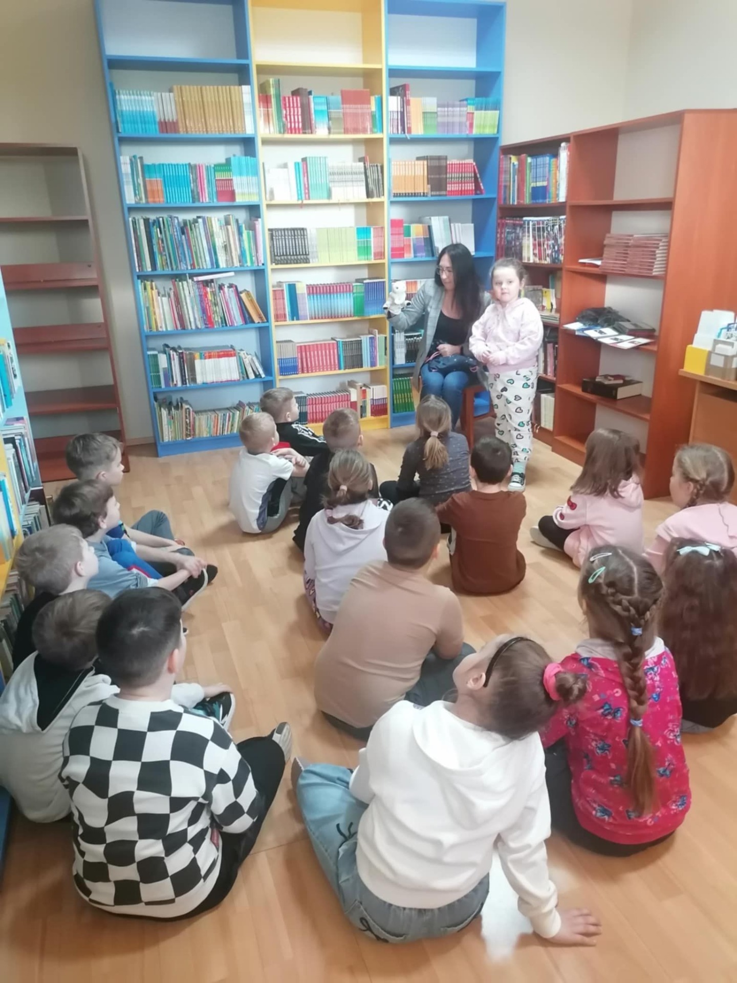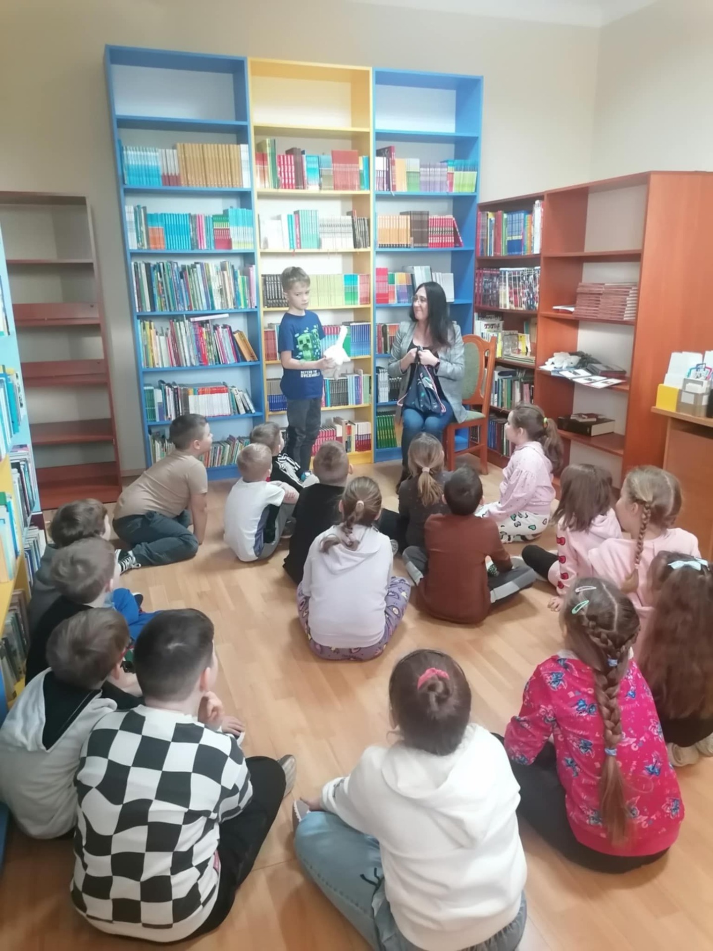 Na zakończenie wizyty uczniowie musieli wykazać się znajomością książek (losowali rekwizyt z magicznego worka i odgadywali, z jakie bajki pochodzi?)