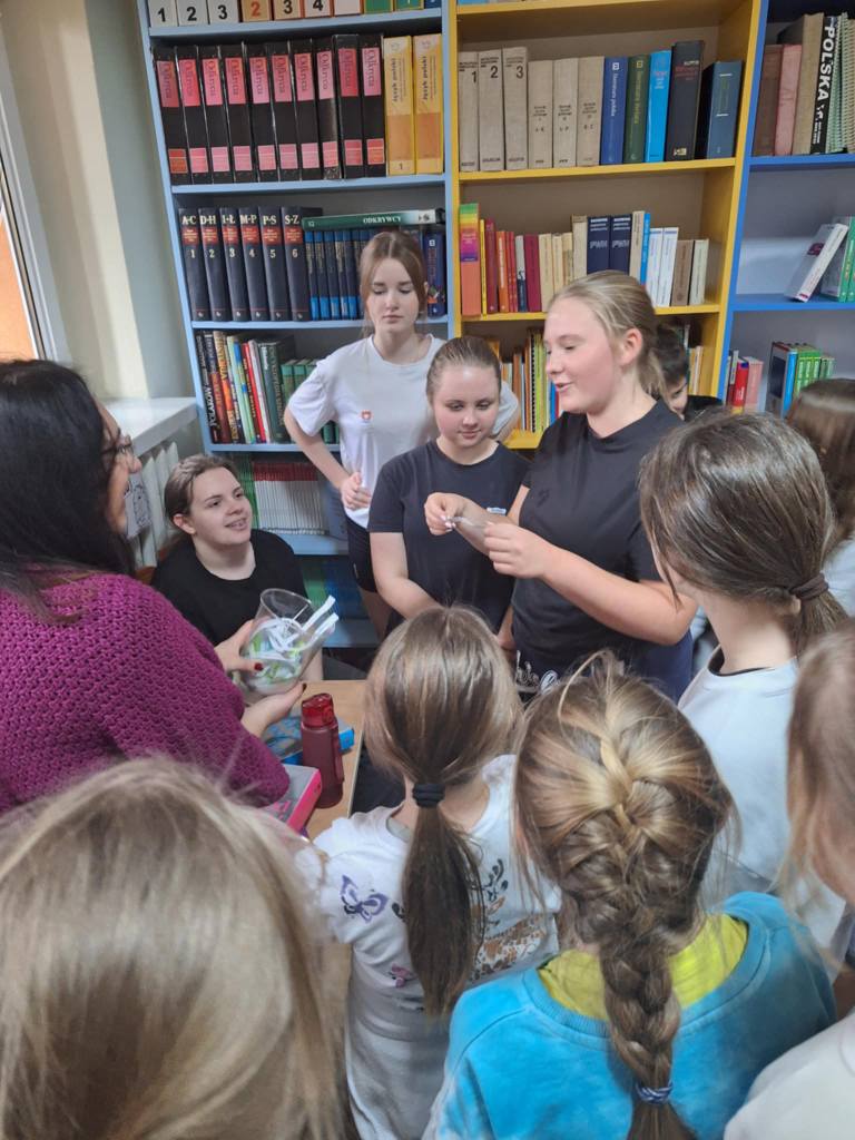 przygotowała dla uczniów klas I-VIII różne zadania związane z językiem polskim. Uczniowie musieli poprawnie odczytać łamańce językowe, wyjaśnić znaczenie związków frazeologicznych oraz podać antonimy wylosowanych wyrazów