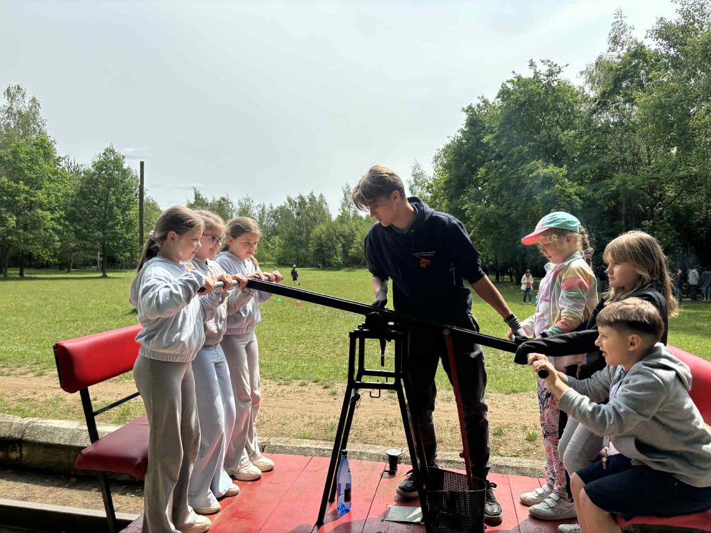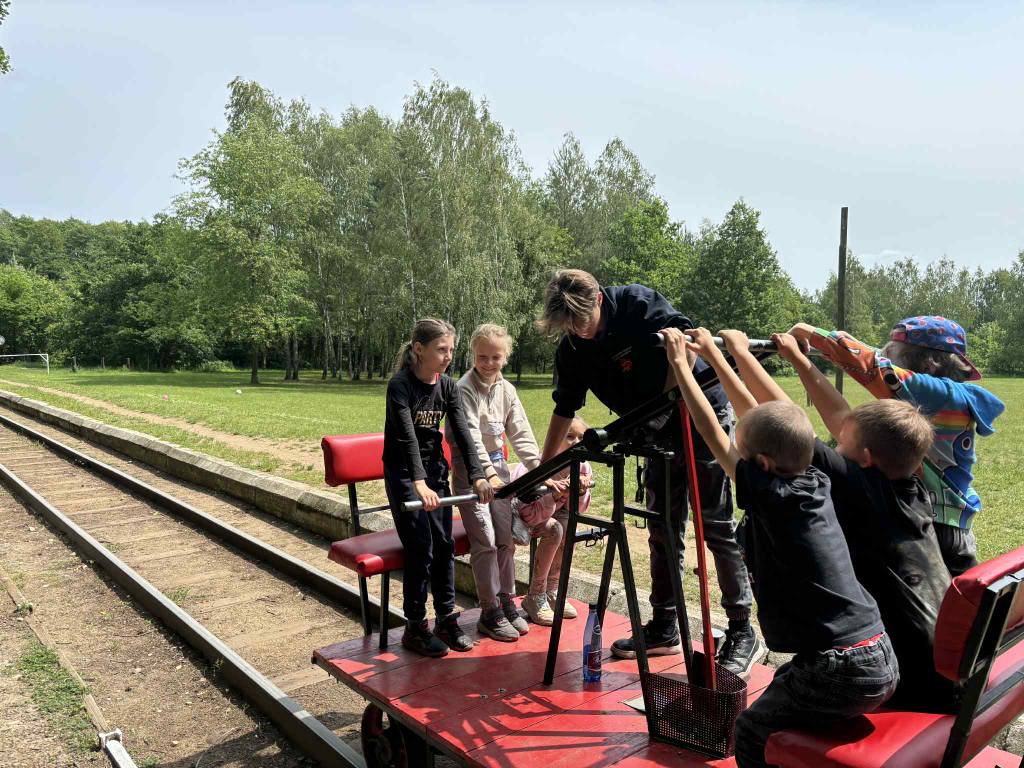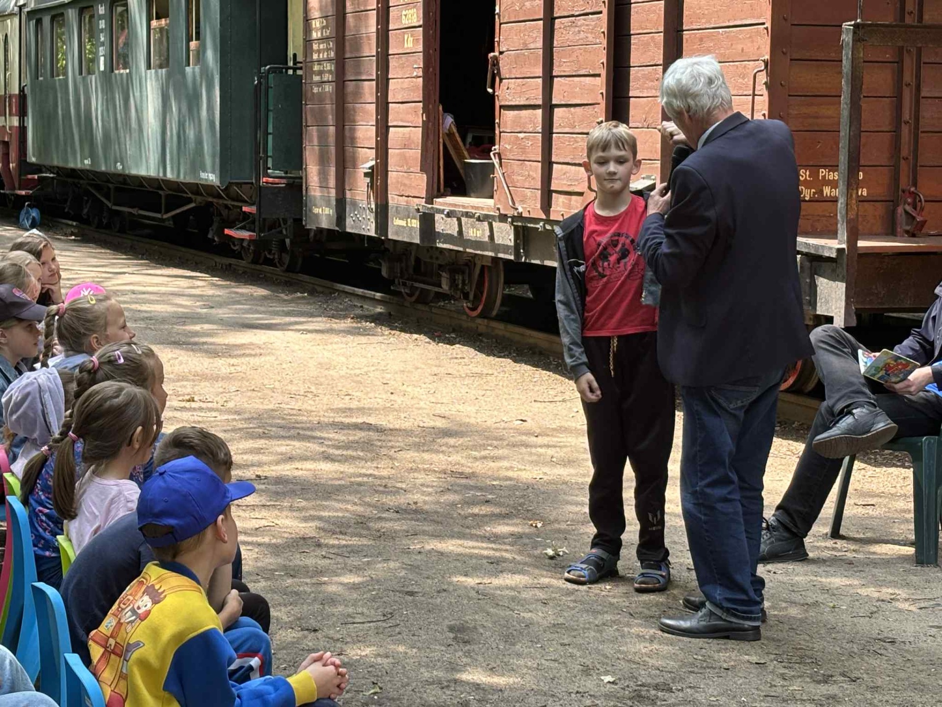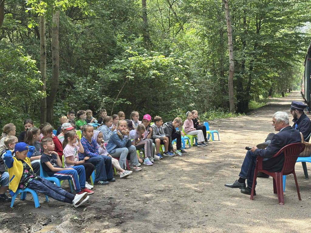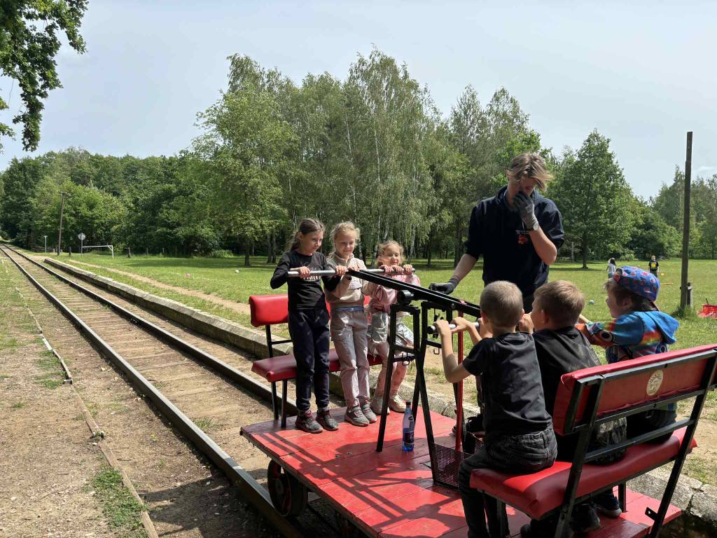 Dzieci uczestniczyły w lekcji edukacyjnej "Lokomotywa Pana Tuwima", jeździły drezyną ręczną oraz posiliły się kiełbaskami z grilla