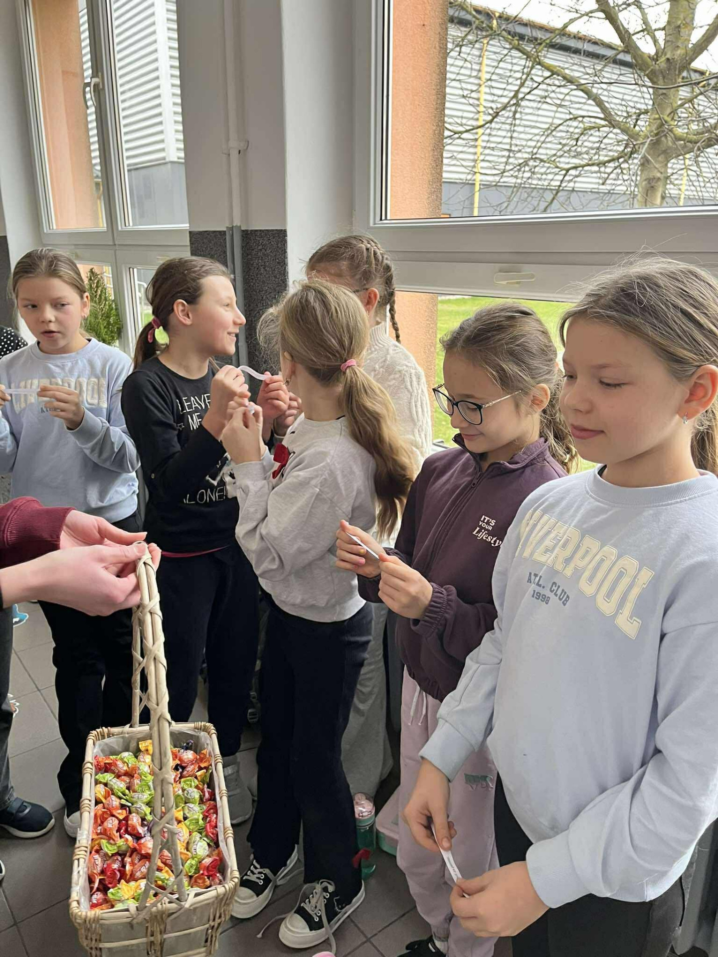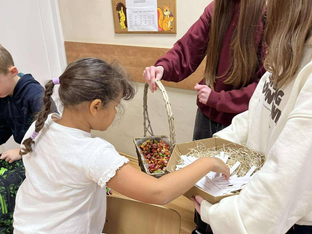 Ponadto uczniowie rozdawali "losy życzliwości" oraz częstowali wszystkich kolorowymi cukierkami !