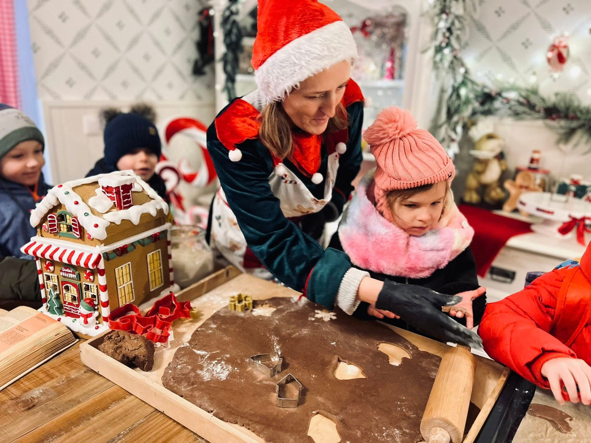 Nasza świąteczna przygoda rozpoczęła się od pełnego tajemnic labiryntu, który już na samym początku wprowadził dzieci w świat magii i zabawy. Każdy kolejny krok odkrywał nowe atrakcje: dekorowanie pachnących pierniczków, które zamieniały się w małe, słodkie dzieła sztuki, oraz pisanie listów do Świętego Mikołaja, wypełnionych marzeniami i dziecięcą radością.