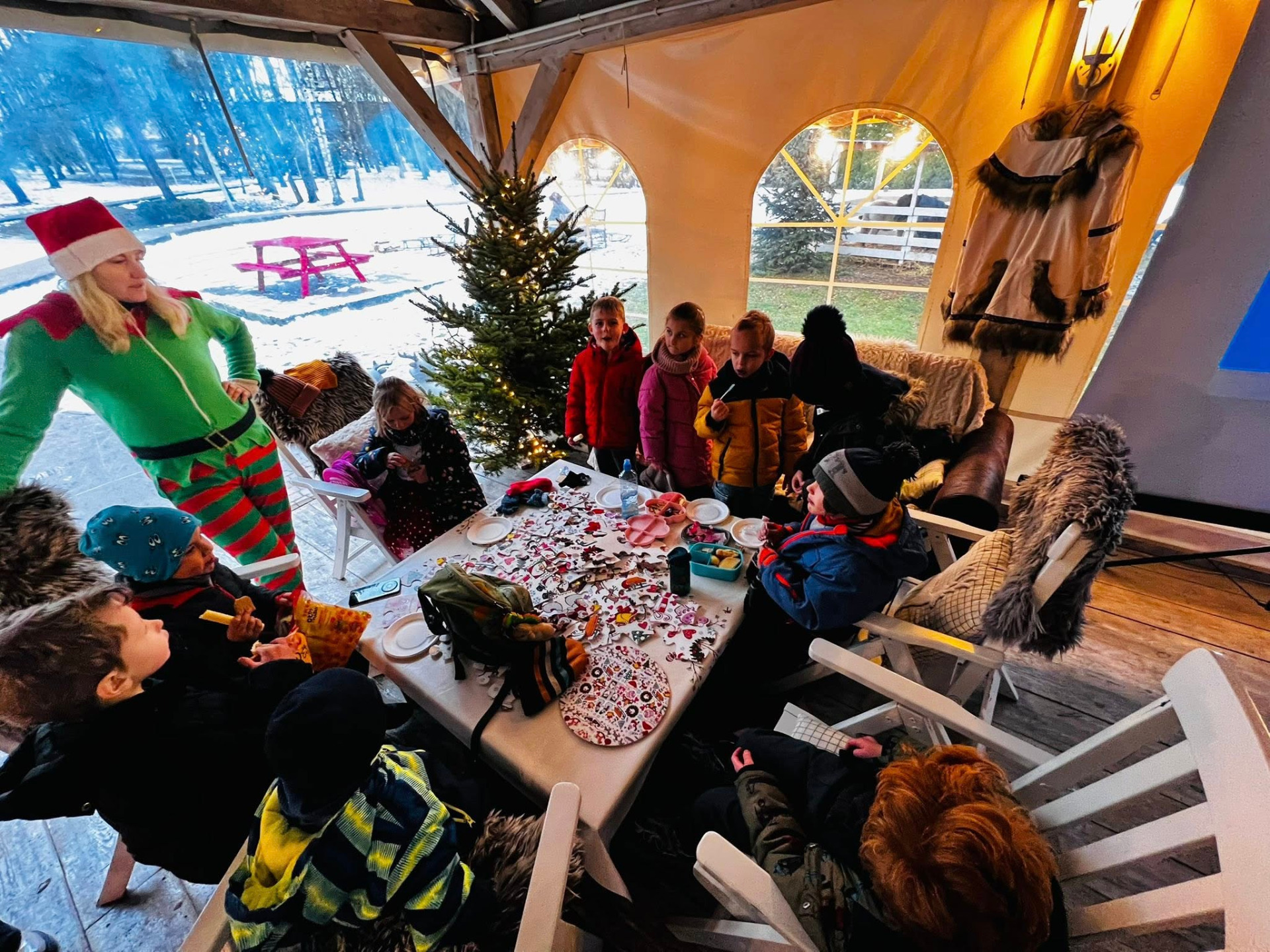 Najbardziej wyczekiwanym momentem było oczywiście spotkanie ze Świętym Mikołajem — pełne uśmiechów i rozmów. Dzieci odwiedziły również zimowe igloo, gdzie mogły poczuć się jak w bajkowej krainie.